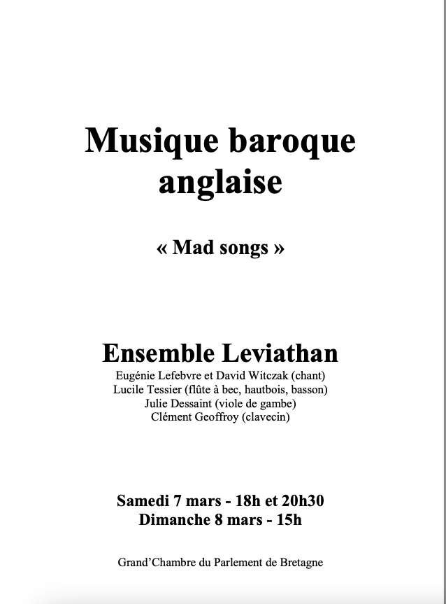 Nous avons choisi d’entourer ces Mad Songs d’airs vocaux et instrumentaux décrivant